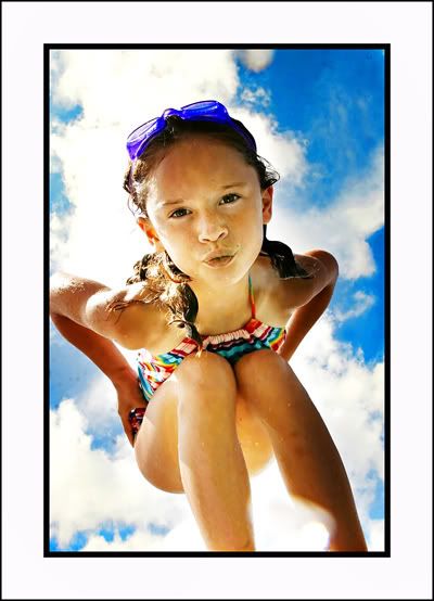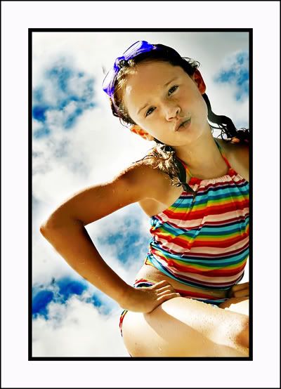 in the pool. Not quite sure what the pouty lips are about, I can see that they are blue..from the popsicle she had minutes before..struggled with color casts..looks like she got a bottle of self-tanner..Ha..Although she is quite tan right now..
